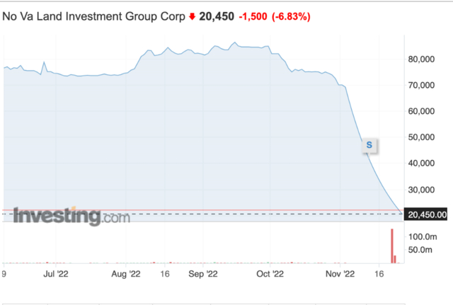 11月24日,越南第二大地产开发商No Va Land Investment Group Corp.股价跌停,已连续17天下跌,在地产股的领跌中,越南股市也沦为全球最差股市,越南胡志明指数已暴跌37%。根据数据显示,No Va Land发行的2026年到期美元债券也已跌至历史新低。