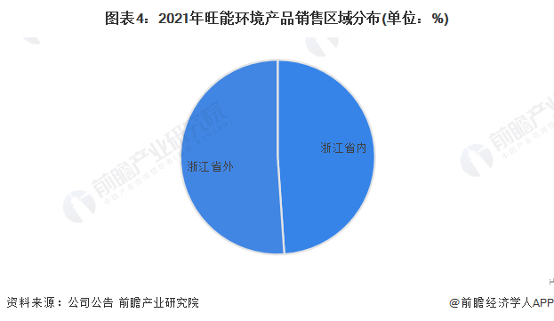 在区域销售方面,旺能环境产品市场主要在浙江省。2021年,公司收入来源于浙江省外部分占比为51.08%,浙江省内地区占比为48.92%;