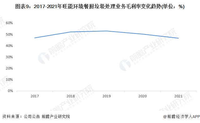 公司餐厨垃圾处理毛利率较为稳定,2017-2021年,旺能环境餐厨垃圾处理毛利率维持在50%左右,近年来毛利率有下降趋势。2020年为50.11%。2021年毛利率下降为46.58%。