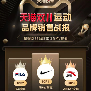 天猫的官方数据显示,今年双11该平台的运动品牌销售榜单中,耐克、Fila、安踏、李宁和阿迪达斯位列前五,德国运动品牌彪马甚至未能跻身前十,仅排在第11位。