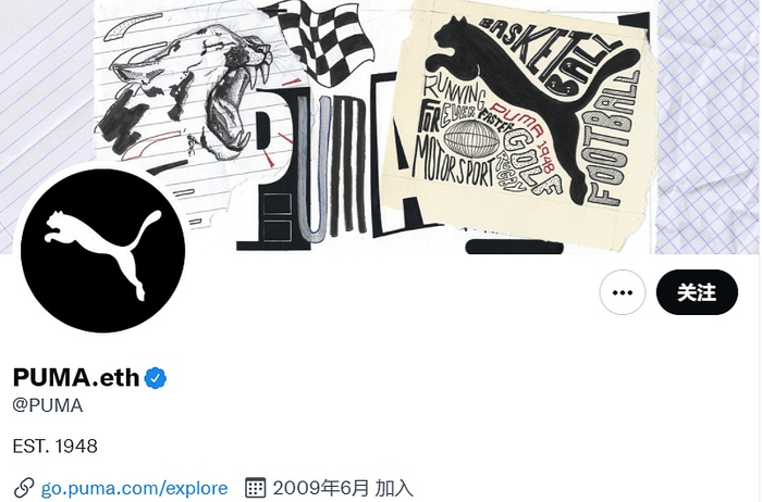 今年年初,彪马将自己的推特账号名称从PUMA改为“PUMA.eth”,意味着品牌正式入局NFT世界。