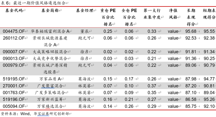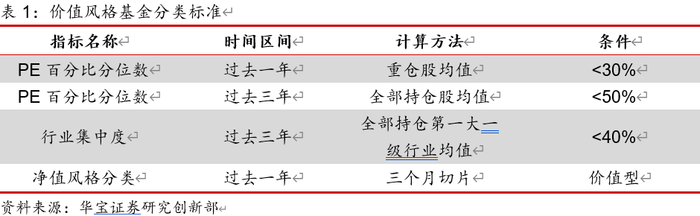 对于价值型基金,我们首先通过净值回归模型,找到在过去一段时间净值表现上属于价值类型的基金,然后再从持仓的角度,通过重仓、全仓数据计算的估值来进一步分析。同时对于行业集中度过高的基金进行剔除,风格过于偏重某一个行业的基金我们不再纳入价值型基金中。