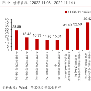 最后,经过大约一周的急跌,债券市场趋于稳定,但出于对年末流动性的担忧,叠加对明年经济复苏的预期,收益率仅出现小幅下降,市场仍处于观望中。截至2022年11月22日,10年期国债收益率报2.83%。