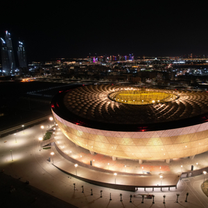 卢赛尔体育场坐落在距离卡塔尔首都多哈中心20公里的卢赛尔新城,设计灵感来自于卡塔尔传统灯笼纹饰和椰枣碗,风格极具中东特色。整体造型呈碗状,屋面呈马鞍形,外幕墙为金色双曲面铝板幕墙,被网友形象地称为“金色之碗”。
