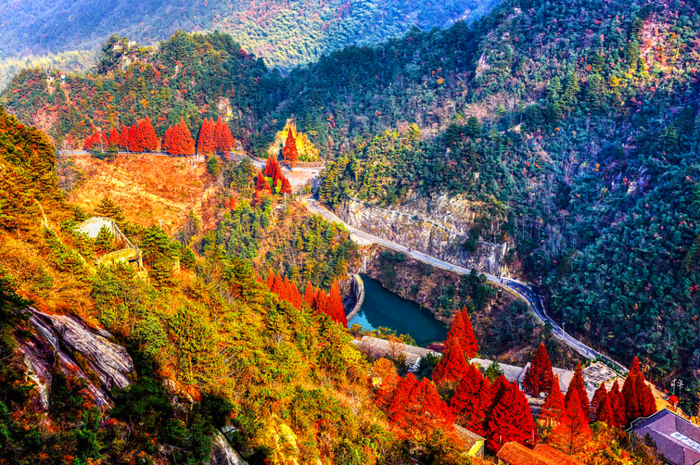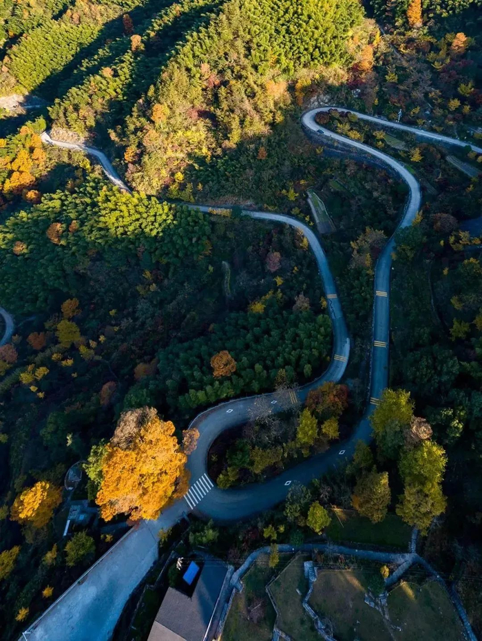 这里有中国十大最美秋色自驾路线之一。开车在路上,犹如穿行于油画之中,红枫、金杏、红柿……一路上收获不同的色彩。