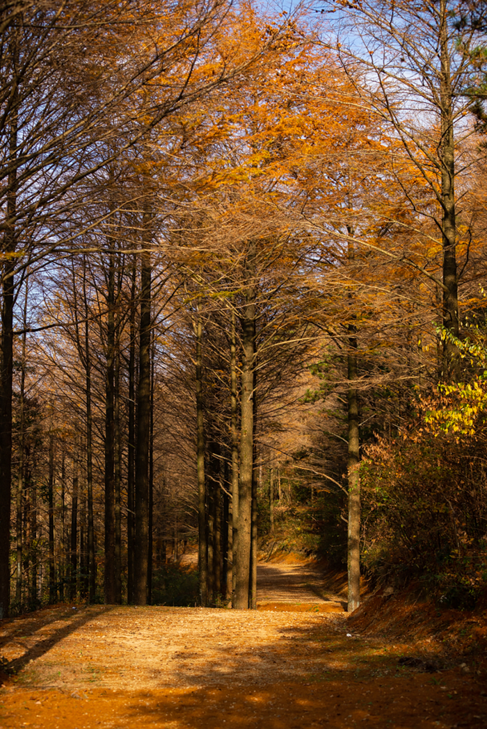 每到秋季,路过青翠的竹林,进入长乐林场核心区,一路上,醉人的枫香红叶迎风飘摇,金色的银杏矗立在池塘边,笔直的水杉林划出长长的林道,美不胜收。
