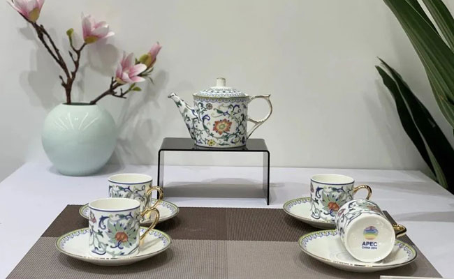 华光国瓷始建于1961年,产品多次被中国国家博物馆、中国美术馆等收藏,多次承制国家重大会议国宴、国宾、国礼用瓷。在国宴用瓷展示区,千年青花“凤舞和鸣”,奢华斗彩“国彩天姿”,雨过天青“千峰翠色”……国宴系列的每一件作品、每一个造型、每一个画面都在讲述着华光国瓷的品牌发展历程。华光国瓷重磅推出青绿中国“千里江山”系列新品,包含办公用具、茶咖具、健康餐具等全线产品,将传世名作“千里江山图”汇聚方寸之间,瓷画穿越千年融通创新,赓续“青绿”文化艺术之脉。在高端定制瓷展示区,展出的是私人订制的华青瓷餐具“清如许”,材质选用华光自主研发并荣获国家发明专利的华青瓷,配以专利高光泽度无铅釉等先进工艺,通透朗润。