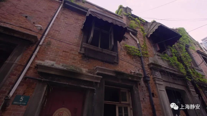由三层主楼、二层附楼及中部庭院围合而成,是近代花园式里弄住宅。