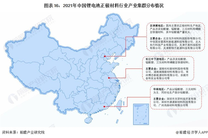 经过近十年的发展,国内锂电池正极材料行业已经形成了以京津地区、长江中下游地区和华南地区三大锂电池正极材料的产业基地。前瞻汇总中国三大锂电池正极材料产业基地主要特点、代表企业如下: