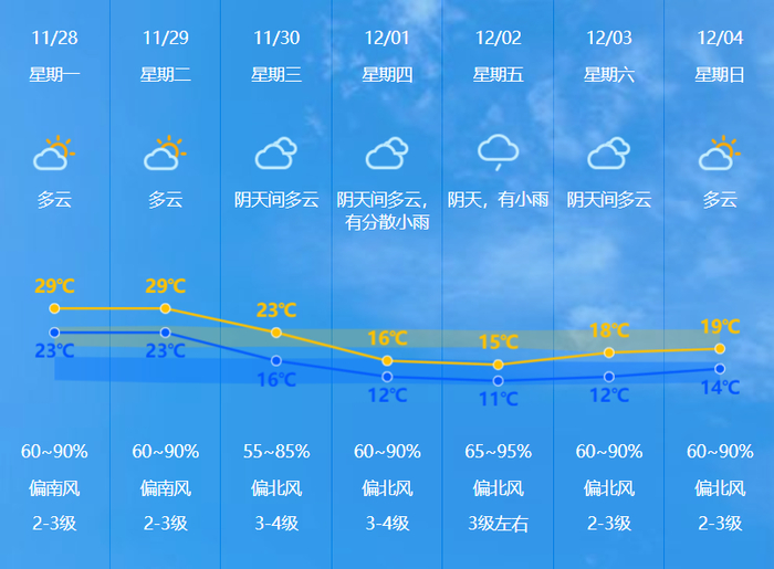 预计28-29日我市渐转多云,气温回升;30日起受冷空气影响,风速加大,气温骤降。近日早晚体感清凉,请注意适时添衣;雨雾时能见度低,请注意交通安全。