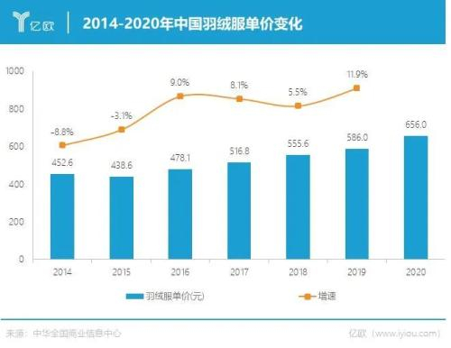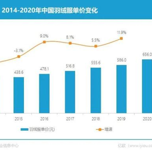 据中华全国商业信息中心数据,2014-2020年,我国羽绒服平均单价已经由452.6元涨到656元;大型防寒服的成交价突破1000元,其中2000元以上的占比已经接近70%。
