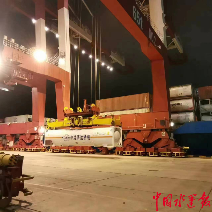 11月27日,连云港市交控物流集团用于进口加拿大液化天然气(LNG)的罐式集装箱在青岛港完成空箱装船,离港前往加拿大温哥华港进行液体装罐。这是交控物流集团首单利用LNG罐箱进口LNG交易,标志着交控物流集团LNG罐式集装箱海外进口模式正式开启运营。