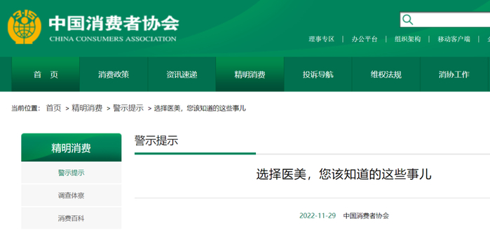 中消协提醒消费者,医美消费事关自身生命健康,应慎重选择,认真做好各项攻略: