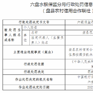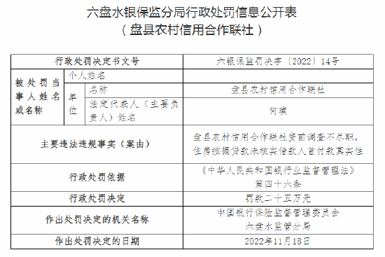因贷前调查不尽职等 盘县农信社被罚款25万元