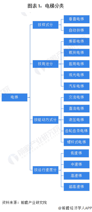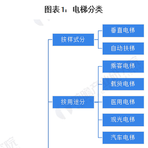 电梯制造业的中游主要是指各类电梯产品的制造,根据电梯的型态来划分,我国电梯产品主要可划分为载人(货)垂直电梯、自动扶梯以及自动人行道等三种类型;根据用途来划分,我国电梯产品可划分为乘客电梯、医用电梯、观光电梯及家用电梯等。