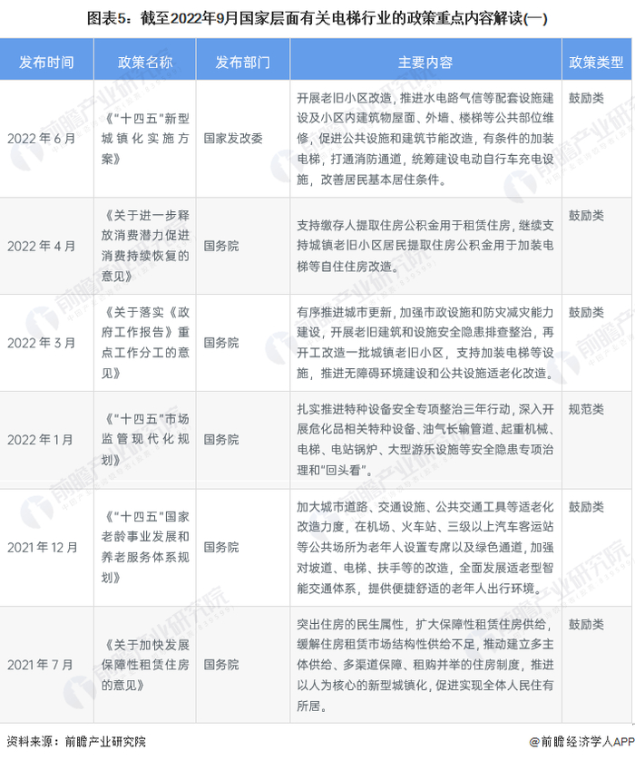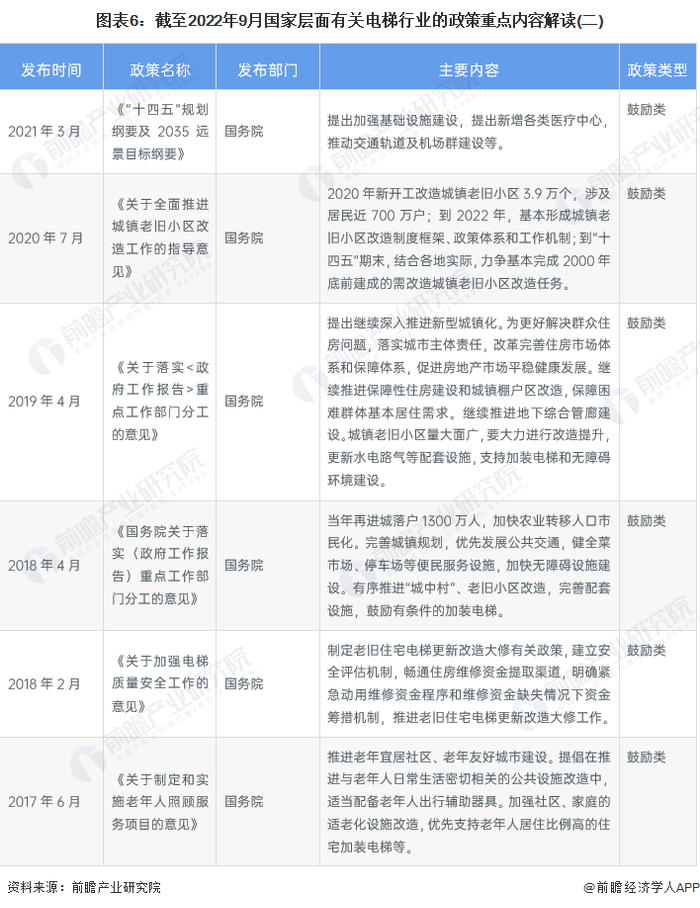 在产业政策方面,由于电梯行业属于装备制造业,近年来国家进一步规范房地产建筑业以及推动旧改项目,电梯业也因此受益匪浅。近年来,我国发布了相关政策鼓励支持电梯行业的发展。