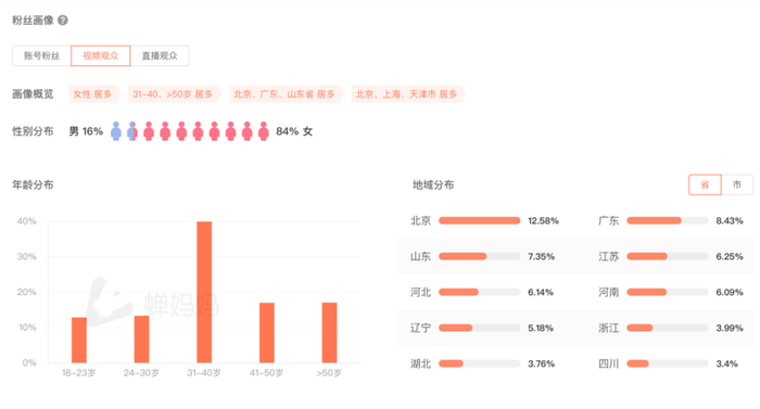 “张兰说金句”系列数据稍微好点,但吸引的并非高价值用户。根据硬糖君当时的观察,张兰最初的粉丝画像偏熟龄,集中在二三线城市。而据蝉妈妈显示,她现在的粉丝仍集中在31-40岁,但地域分布已转向北京、广州等一线城市。