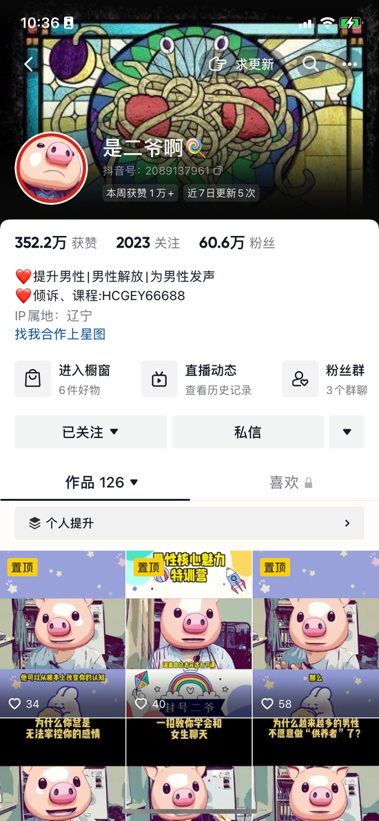 他们创办了东北第一家约会公司,以售卖情感课程和一对一情感咨询的模式赚钱。2017年,他们开始在抖音上发布情感类视频,后来出于一些理念上的不合,二爷在两年后从公司离职,自己做了抖音号“是二爷啊”。
