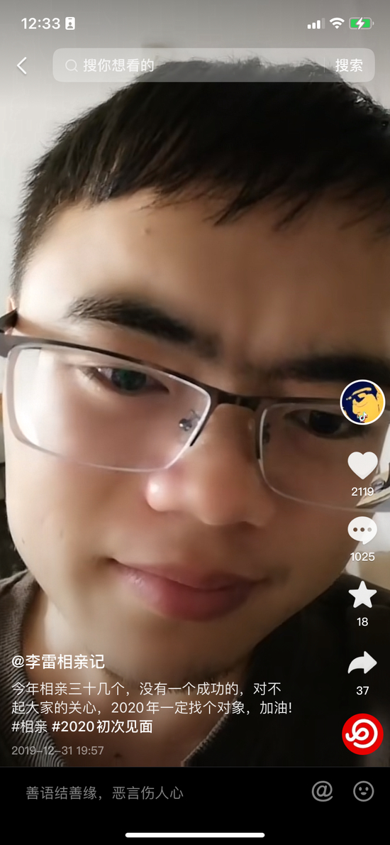 2019年,李雷经历了三十几次相亲,没有一次成功。李雷也逐渐在抖音上树立起一个“卑微男青年在线求爱”的形象。2019年的最后一天,他发了一条抖音,表示2020年一定要找个对象。