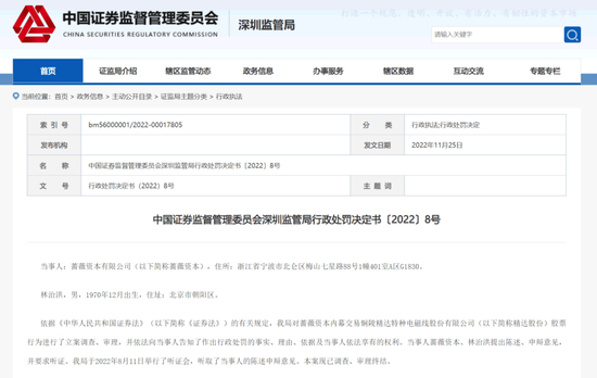 “蔷薇资本交易精达股份股票的行为,违反了证券法第五十条、第五十三条第一款的规定,构成证券法第一百九十一条第一款所述内幕交易违法行为。”深圳证监局认为,蔷薇资本的前述违法行为,林治洪是直接负责的主管人员。