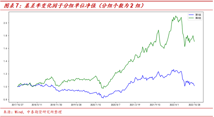 首先测试基差率因子的分组单位净值,具体情况如图表2所示。