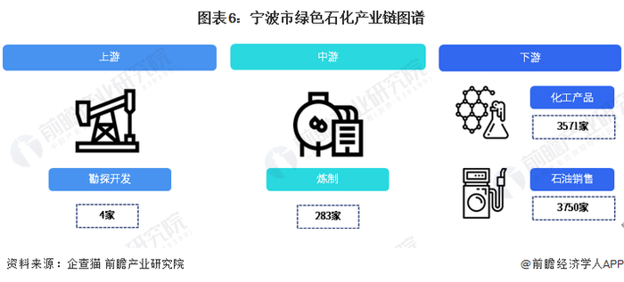在政策指引和市场需求的驱动下,宁波市绿色石化产业链不断完善,其中,在石油勘探、炼制及下游应用环节均有企业布局: