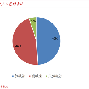 由于烧碱和纯碱的化学性质相似,导致两者在部分下游需求中存在一定的替代性。浮法及光伏玻璃对重质碱的需求无可替代,纯碱和烧碱的替代性更多是表现在轻质碱和烧碱之间,主要有氧化铝、泡花碱、味精、洗涤剂等行业。其中氧化铝的拜耳法原料为烧碱,烧结法原料为轻碱,而我国氧化铝拜耳法产量占85%以上。泡花碱干法用纯碱,湿法用烧碱,我国以干法制备为主。氧化铝与泡花碱在更换原料时可能需要更换相应的设备,因此企业对于两者的替换相对谨慎。而对于味精和洗涤行业来说两者替换不需要更换设备,因此企业更多会对比两者价差选择性价比合适的原料。具体的,市场一般用1.325×轻碱与32%液碱的折百价,去衡量两者的价格优势。烧碱可替代的下游行业在纯碱总需求中的占比大约在5%。