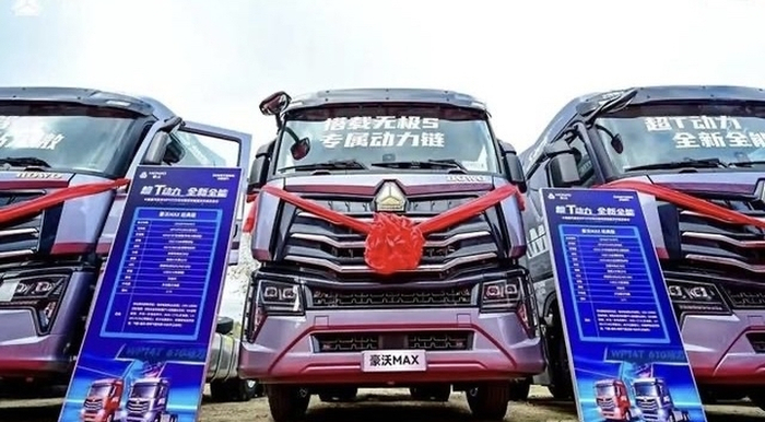 在终端市场,中国重汽更是捷报频传。豪沃TH7、豪沃MAX、豪沃TX、豪沃N系、汕德卡C9H、G7S多款产品交付全国多地,在各细分市场斩获颇丰。山东烟台某客户订购100辆豪沃MAX WP14T/610马力牵引车,这是国内首次大马力重卡批量交付,这批车百公里平均油耗28升,较其他品牌车辆百公里节油2~3升,而且出勤率高,客户非常满意。值得一提的是,豪沃MAX/WP13/480牵引车在复合运输行业单品市占率突破10%,行业增速第一。