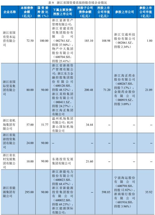 根据Wind企业库资料,除财通证券股份有限公司和浙江省金融控股有限公司外,浙江省省属国企发行人均在省国资委体系内,截至2022年10月13日共计10家存续样本企业,省国资委直属企业本部存量债券余额897.29亿元。