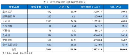 截至2022年9月30日,不考虑金融债,浙江省存续信用债券3966支、债券余额合计2.84万亿元,其中短期债券和中长期债券余额分别占6.61%和93.39%;按债券类型分类,公司债发行数量及存续余额规模最高,分别为1380支和1.16万亿元。
