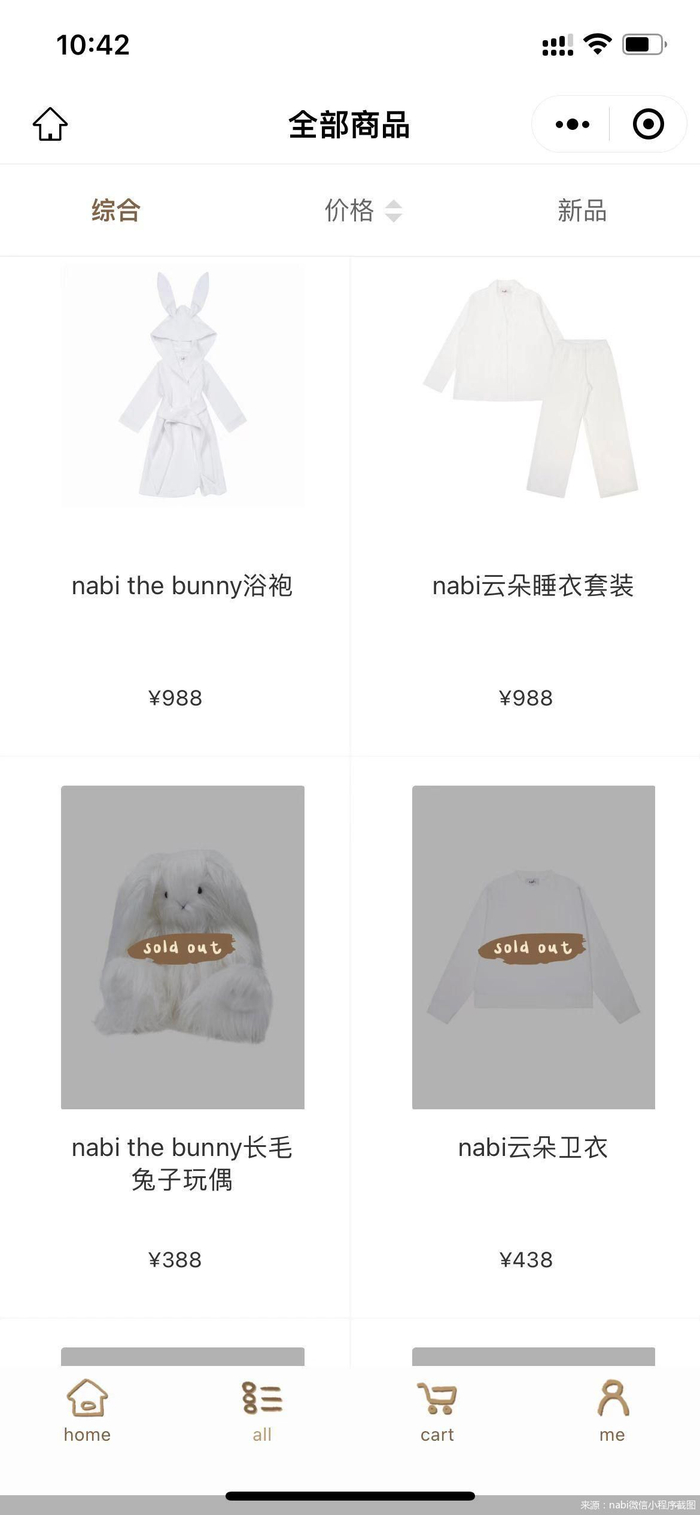 日前,欧阳娜娜推出自创品牌“nabi”,陆续在微信小程序、小红书、微博等平台开设账号。并于11月22日正式发售了“云朵胶囊系列”,共8个单品,包括988元的浴袍、988元的睡衣、388元的围巾、168元的袜子等。