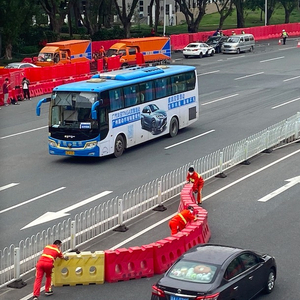 11月30日,15点30分左右,广州大桥上,工作人员正在拆除路障。时代财经/摄