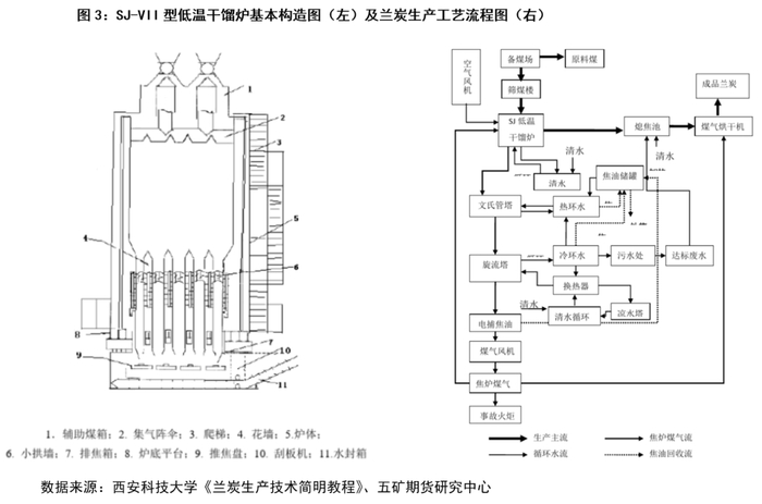 兰炭生产工艺(低温干馏)中产生的副产品,煤气及煤焦油也能够被充分利用:
