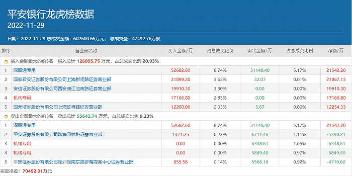 不过,界面新闻注意到,11月29日北上资金和机构资金面对平安银行的态度均出现了明显的分歧。