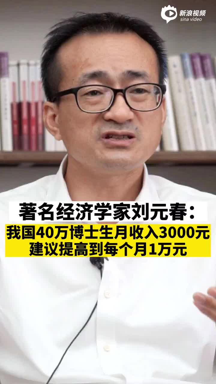 著名经济学家刘元春:我国40万博士生月收入3000元,建议提高到每个月1万元。