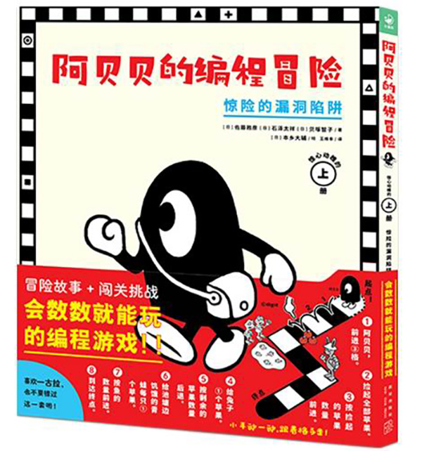 “阿贝贝的编程冒险”系列是有简单加减基础就能玩的编程思维启蒙绘本。这套书共两册,采取了冒险故事+闯关游戏+编程概念科普的形式,讲述了阿贝贝王子临危受命完成10个程序关卡,最终打败病毒军团、成为勇敢而有谋略的国王的故事。