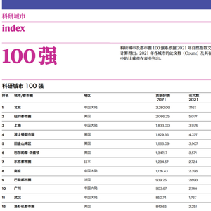 自然指数-科研城市排名公布,北京连续6年排名全球第一