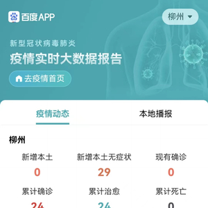 国家政府服务平台最新数据显示,目前柳州全域无风险地区。据百度新冠疫情实时大数据报告,截至11月30日,柳州近三年累计确诊24例,新增本土无症状29例。其中,柳州卫健委在接受媒体采访时表示,柳州已有的无症状感染者基本都是外来输入。