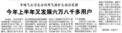 从此以后,北京的天然气事业快速发展。到1992年6月时,全市已有天然气用户21万户,约占全市管道燃气用户总数的三分之一。(1992年6月21日《北京日报》2版,《本市5年发展天然气用户21万》)