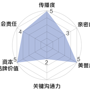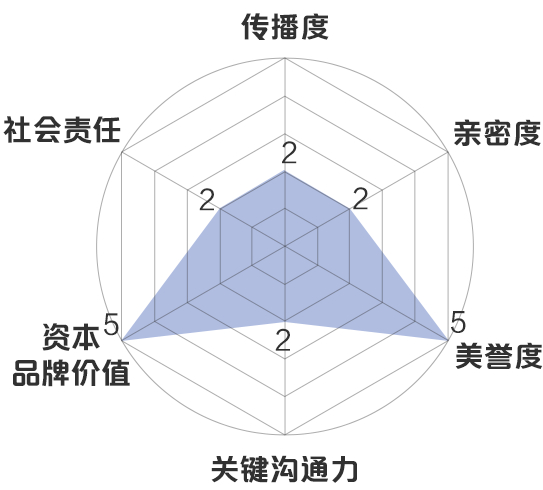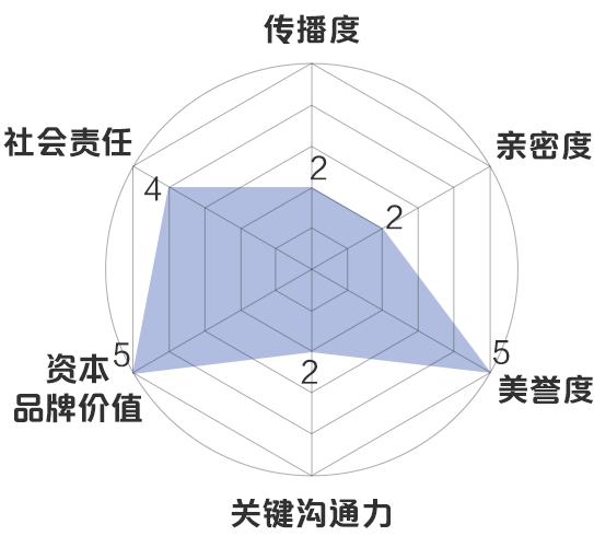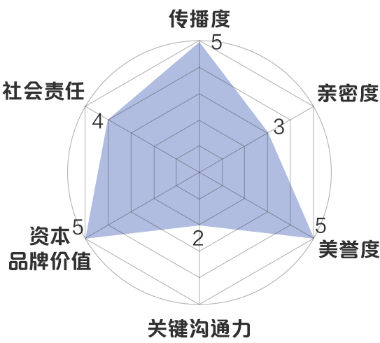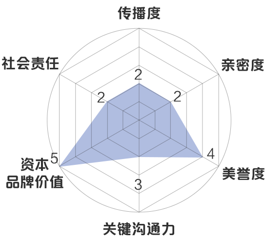 新浪财经品牌价值模型:传播度5分,亲密度3分,美誉度5分,关键沟通力2分,资本品牌价值5分,社会责任4分