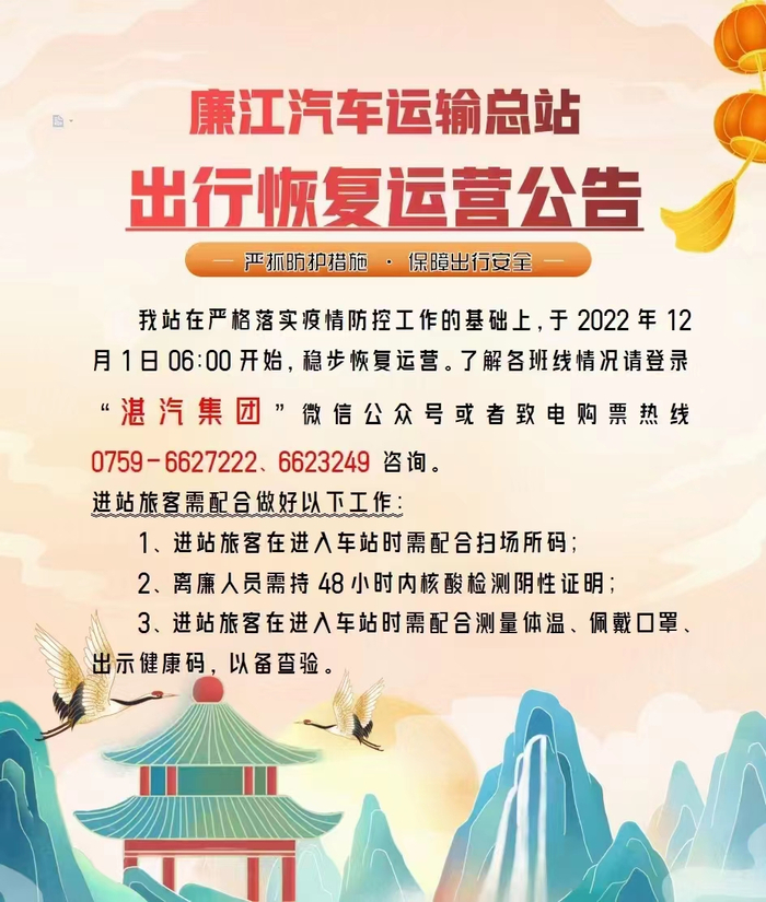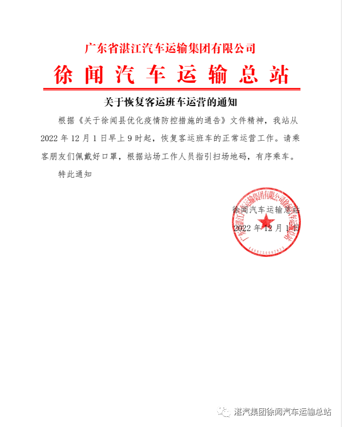 廉江、徐闻汽车运输总站已恢复客运班车运营