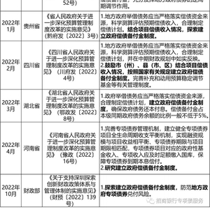表1 地方政府偿债备付金相关重点政策