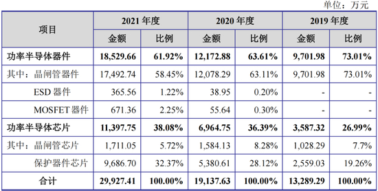 据披露,报告期内,晶闸管系列产品占主营业务收入的比例在60%以上。公司主要产品的销售收入及其占主营业务收入的比例情况如下: