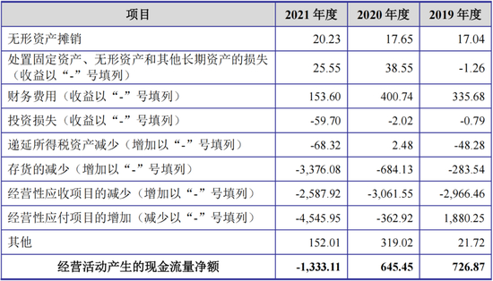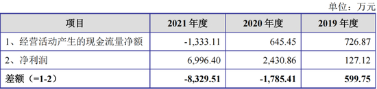 报告期内,公司各期经营活动产生的现金流量净额与各期净利润相比存在一定差异,其中2021年度差异较大,主要原因系:①当年度存货余额增加3,376.08万元,一方面发行人为应对疫情反弹及春节前后物资相对供应紧张导致价格上涨等情况,增加对原材料的采购,2021年末较2020年末发行人原材料余额增加506.15万元;另一方面为了保证交货周期,结合发行人在手订单情况,报告期内对部分通用性产品进行了备货,2021年末较2020年末发行人库存商品余额增加2,216.79万元;②当年度经营性应收项目增加2,587.92万元,主要系2021年发行人收入规模较2020年进一步扩大,2021年末发行人应收账款余额、应收票据和应收款项融资余额较上年度末分别增加752.59万元、1,801.38万元;③当年度经营性应付项目减少4,545.95万元,其中应付账款金额较2020年末减少1,015.21万元,主要系2021年投资资金的到位使公司经营资金较充足,同时部分供应商缩短账期,导致对部分供应商的付款金额增加。