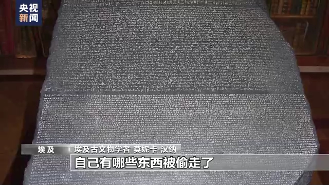 埃及古文物学者 莫妮卡·汉纳:罗塞塔石碑对我而言是西方殖民主义对埃及文化破坏的一个象征,它代表着战争带来的破坏,它代表着文化暴力。我们希望埃及人了解自己有哪些东西被偷走了,我们不只是要求归还罗塞塔石碑,我们要求归还被偷走的全部17件藏于大英博物馆的文物。