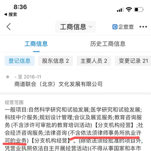 记者在企查查上查询到,中城院的商标属于中城百亿产业信息技术研究院(北京)有限公司,该公司成立于2013年9月,注册资本为1000万人民币,经营范围中,包含社会经济咨询服务、法律咨询服务。