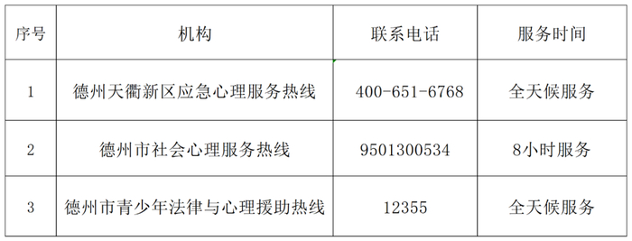 德州市疫情防控心理咨询热线