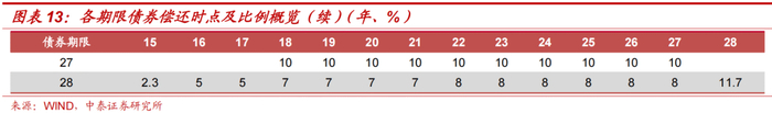 接下来,我们选取典型特殊条款,分析了条款的内容、发展情况,以及条款在使用中的要点。对于赎回和回售两种典型选择性条款,需要额外注意赎回日和回售日在同一天的情况,我们研究了当一只债券同时存在赎回、回售、调整票面利率时,发行人及投资人的行权顺序关系。对于延期条款,需要注意相关度较高的利息递延权及强制付息事项。对于提前还款条款,我们统计了含有提前还款条款的债券期限,并研究了各期限债券的还款时点与比例的一般规律。我们还注意到,当回售与提前还款同时出现时,回售条款可能会影响提前偿还条款的偿还时点和比例。