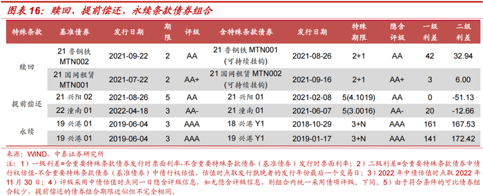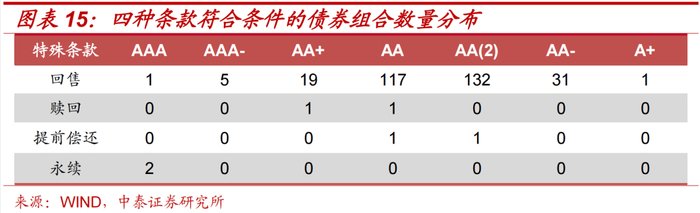 由于赎回、提前偿还、永续条款三者得到的债券组合过少,以枚举各债券组合的方式进行分析。