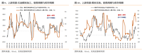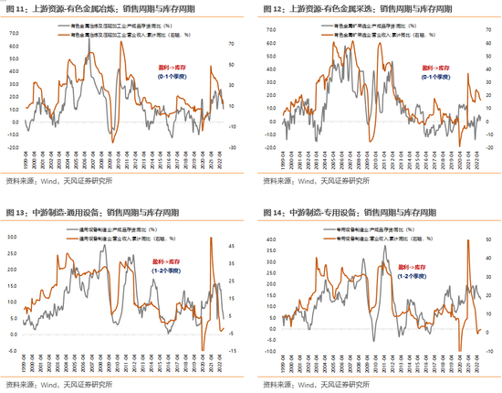 上游行业和下游行业的库存周期与销售周期同步性较好,滞后时长一般在1个季度之内;